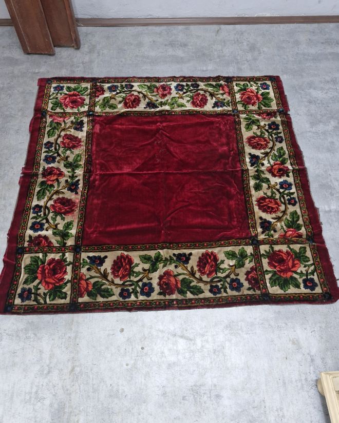 Kilimy wykonane z mięsistego, przyjemnego w dotyku pluszu, utrzymane w głębokim, bordowym kolorze