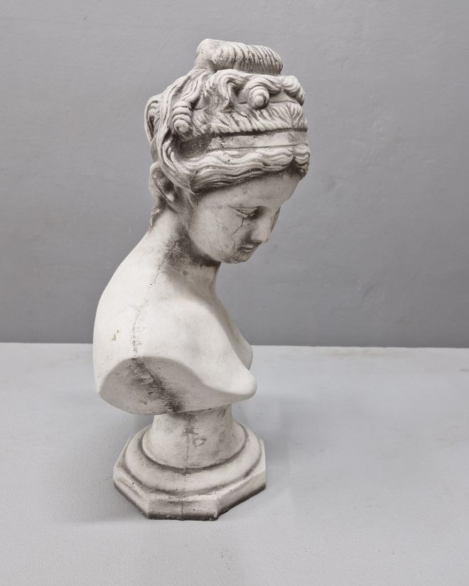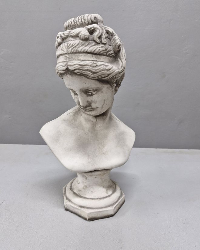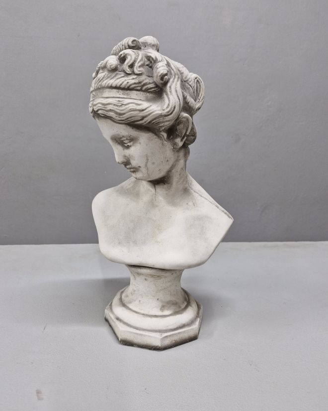 Figura wykonana z doskonałej jakości białego betonu architektonicznego.