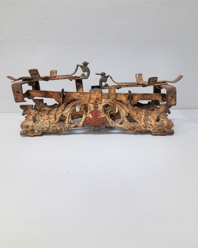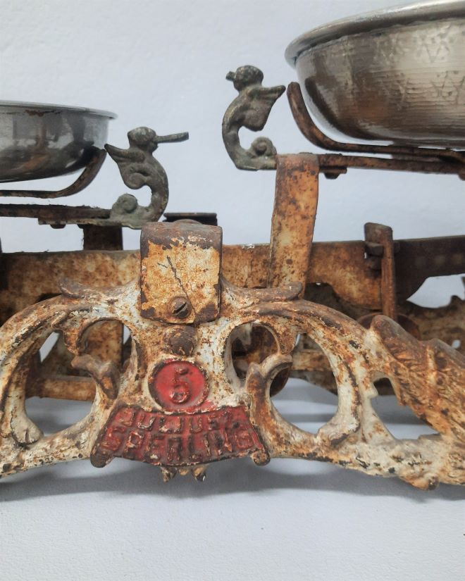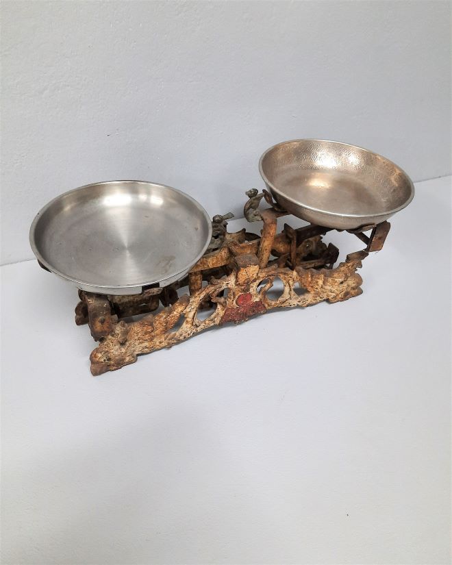 Waga żeliwna, zachowana w oryginalnym stanie.