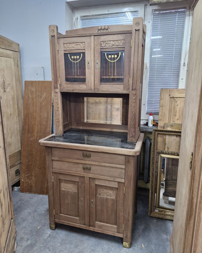 Kredensy i bufety do jadalni i salonu: solidne lite drewno, rzeźbienia, czasem marmurowe blaty i szkło zdobione. Przechowują, eksponują i dają wygodny blat serwisowy. Meble z charakterem – gotowe do wstawienia lub delikatnej personalizacji.