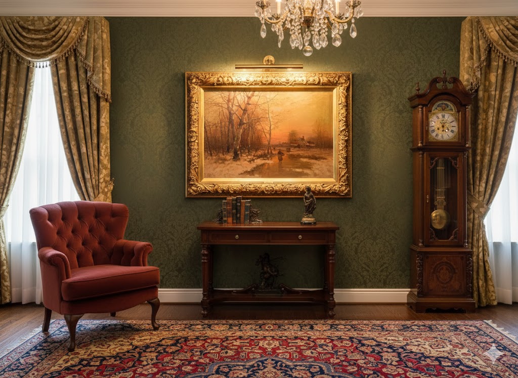 Orzechowa Biblioteka w Stylu Biedermeier
